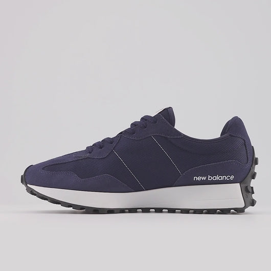 Als Freizeitjogging in den Siebzigerjahren populär wurde, verlagerte sich der Anspruch an Laufschuhe von der bloßen Existenz zur Leistung. Auch wenn die Designs dieser Zeit nach heutigen Maßstäben als schlicht zu bezeichnen sind, so haben sich Laufschuhe in diesem Jahrzehnt doch etabliert. Der 327 wirft ein neues Licht auf die Siebzigerjahre als Zeit der Innovation, indem er klassische Designelemente kühn aufgreift und auf durch und durch moderne Weise neu gestaltet. Mit einer kantigen Neuinterpretation der bewährten Keilsilhouette, einem übergroßen, asymmetrisch angebrachten „N“-Branding und einer umlaufenden Stollen-Außensohle im Trail-Stil bietet der 327 nicht weniger als eine komplette Neuinterpretation unseres traditionellen Laufschuhs.