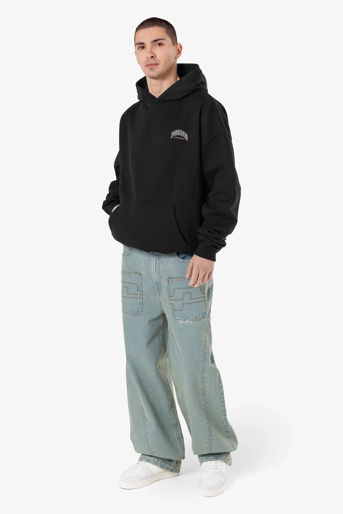 - schwarzer gewaschener Hoodie