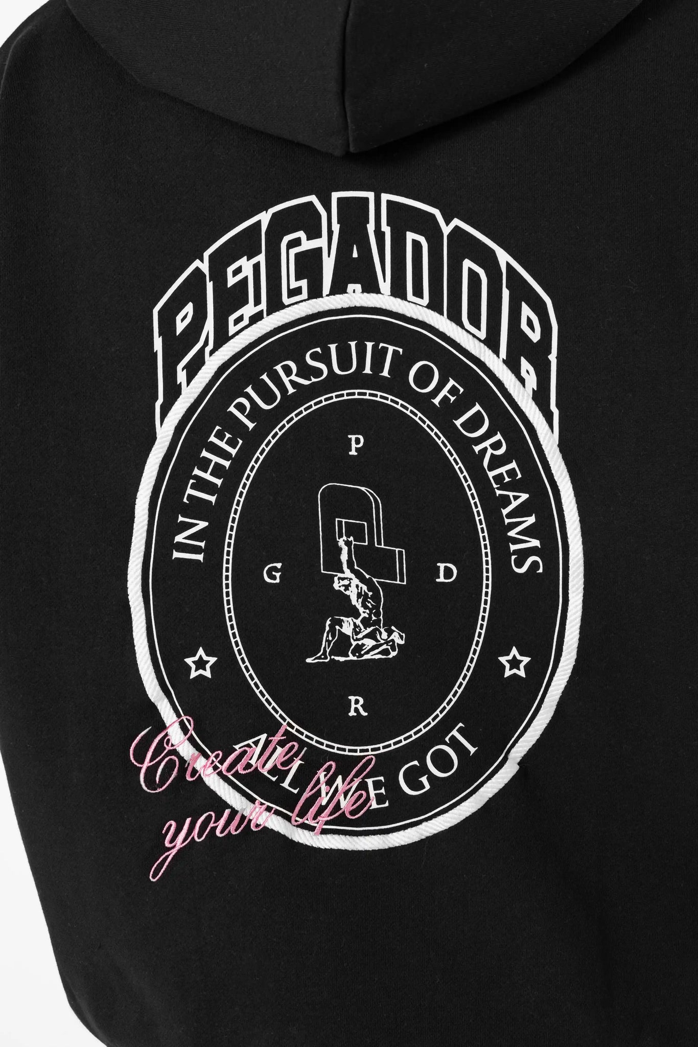 - rust pink-farbige "Create your life" Stickerei auf der Rückseite
